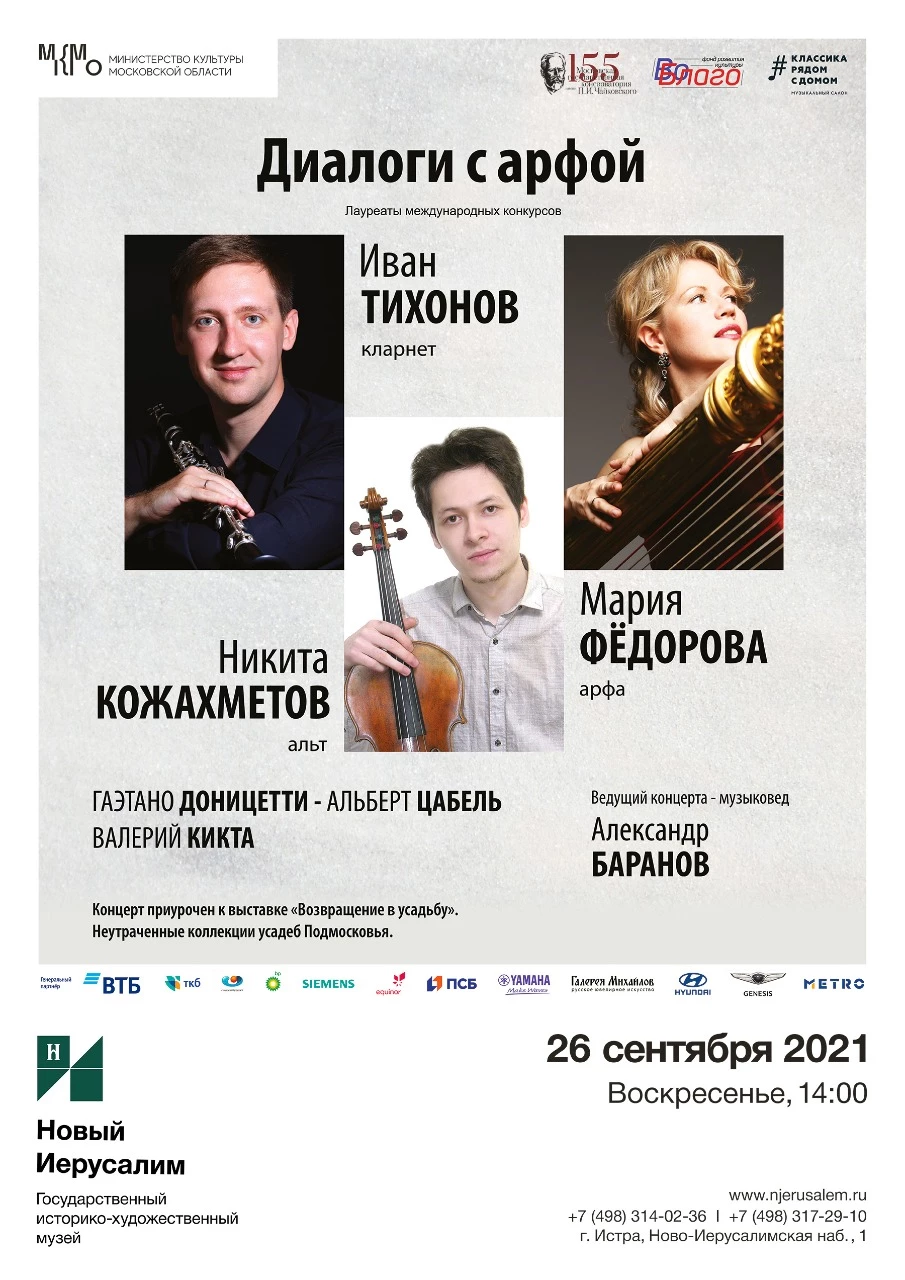 Музыкальный салон «Классика рядом с домом» и Государственный историко-художественный музей «Новый Иерусалим» представили концерт, приуроченный к выставке «Возвращение в усадьбу». Он состоялся 26 сентября в 14.00.