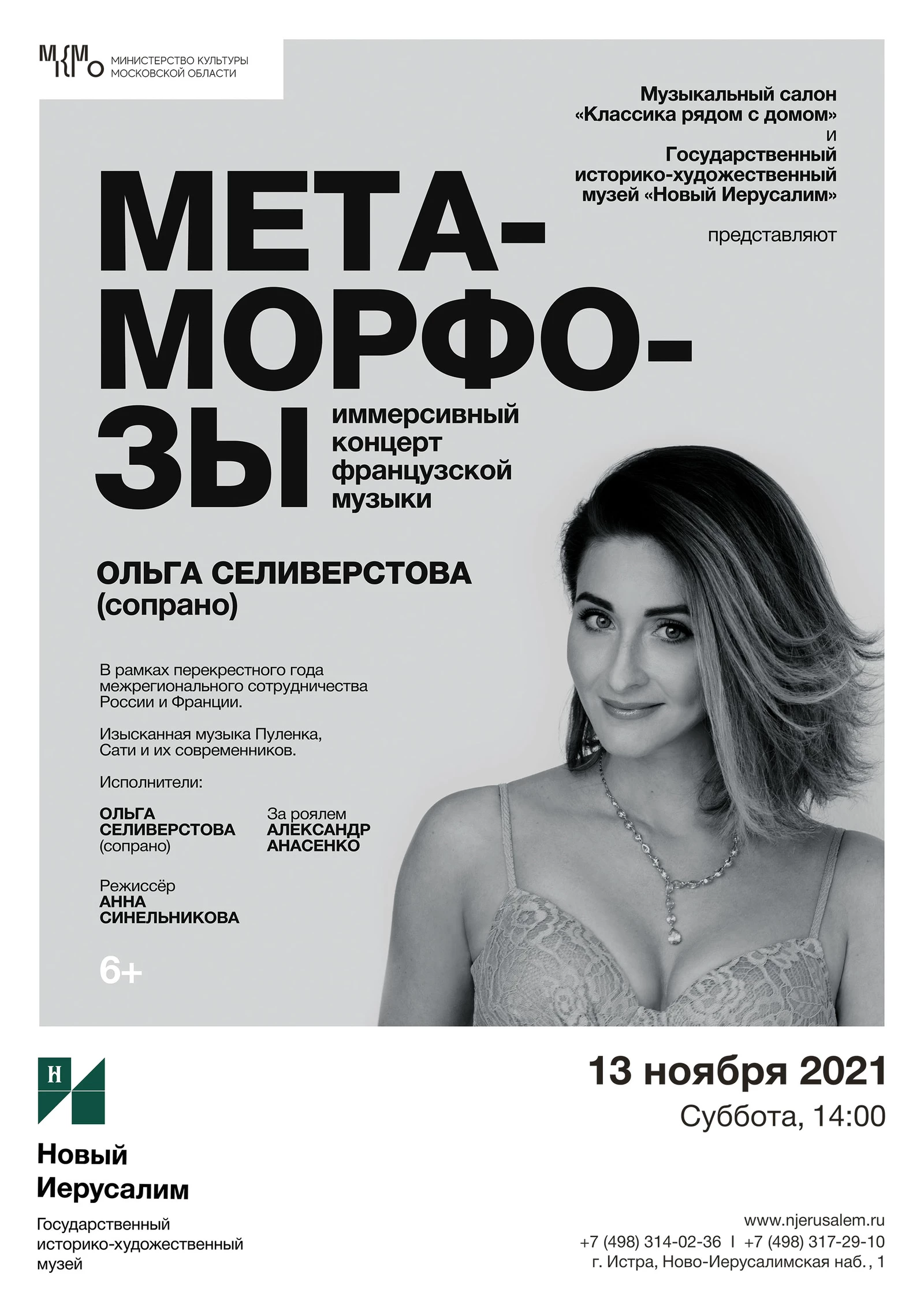 Музыкальный салон «Классика рядом с домом» и Государственный историко-художественный музей «Новый Иерусалим» 13 ноября в 14.00 представили вниманию зрителей иммерсивный концерт французской музыки в Конференц-зале музея в рамках перекрестного года межрегионального сотрудничества России и Франции.