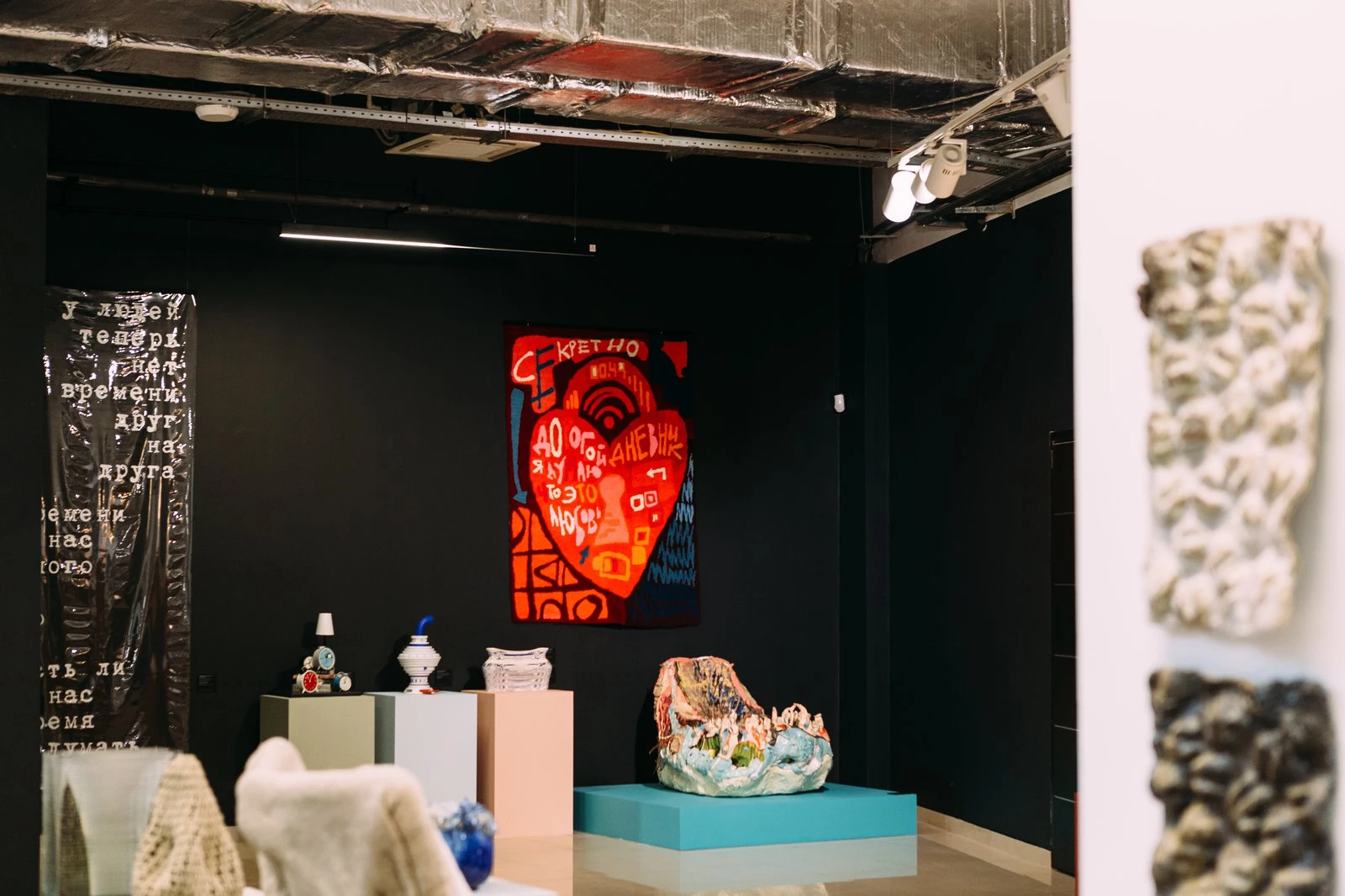 Перед организаторами проекта стояла задача создать выставочное пространство для диалога очень разных предметов — мебели, текстиля, света, фарфора, керамики, — которые различны по стилям, идеям, колористике. Выполнению этой задачи помогли объёмно пространственные композиции, своего рода тотальные инсталляции, которые позволили расположить столь разные экспонаты.