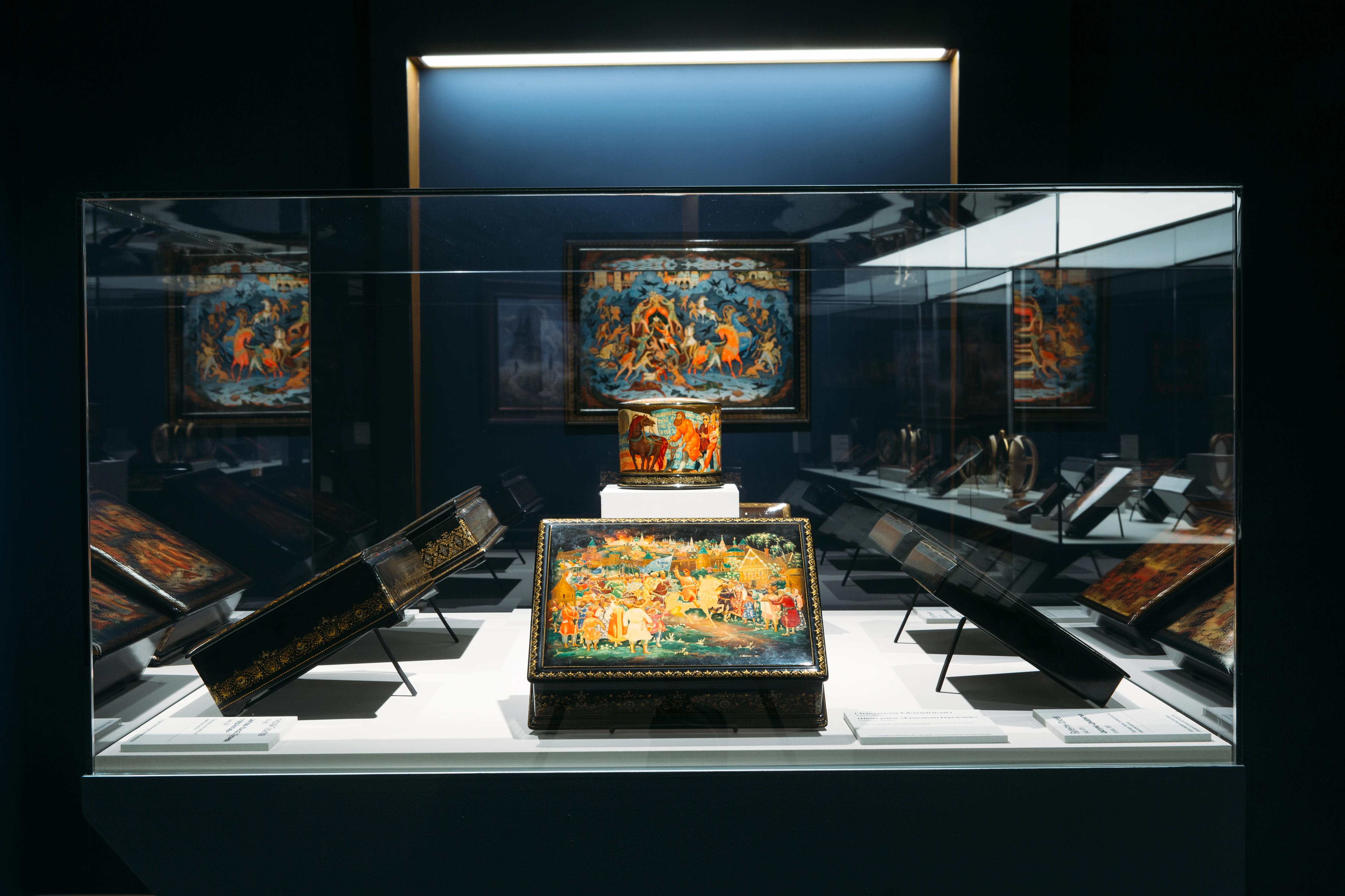 На выставке «Лаки. Большая история в миниатюре: Федоскино, Палех, Мстёра и Холуй» посетители музея смогут погрузиться в удивительный мир народного творчества и открыть для себя новые грани русской культурной самобытности. Экспозиция стала своеобразным продолжением выставки «Небесная мастерская» 2020 года, которая была посвящена народным художественным промыслам Московской области и рассказывала об их прошлом, настоящем и будущем.