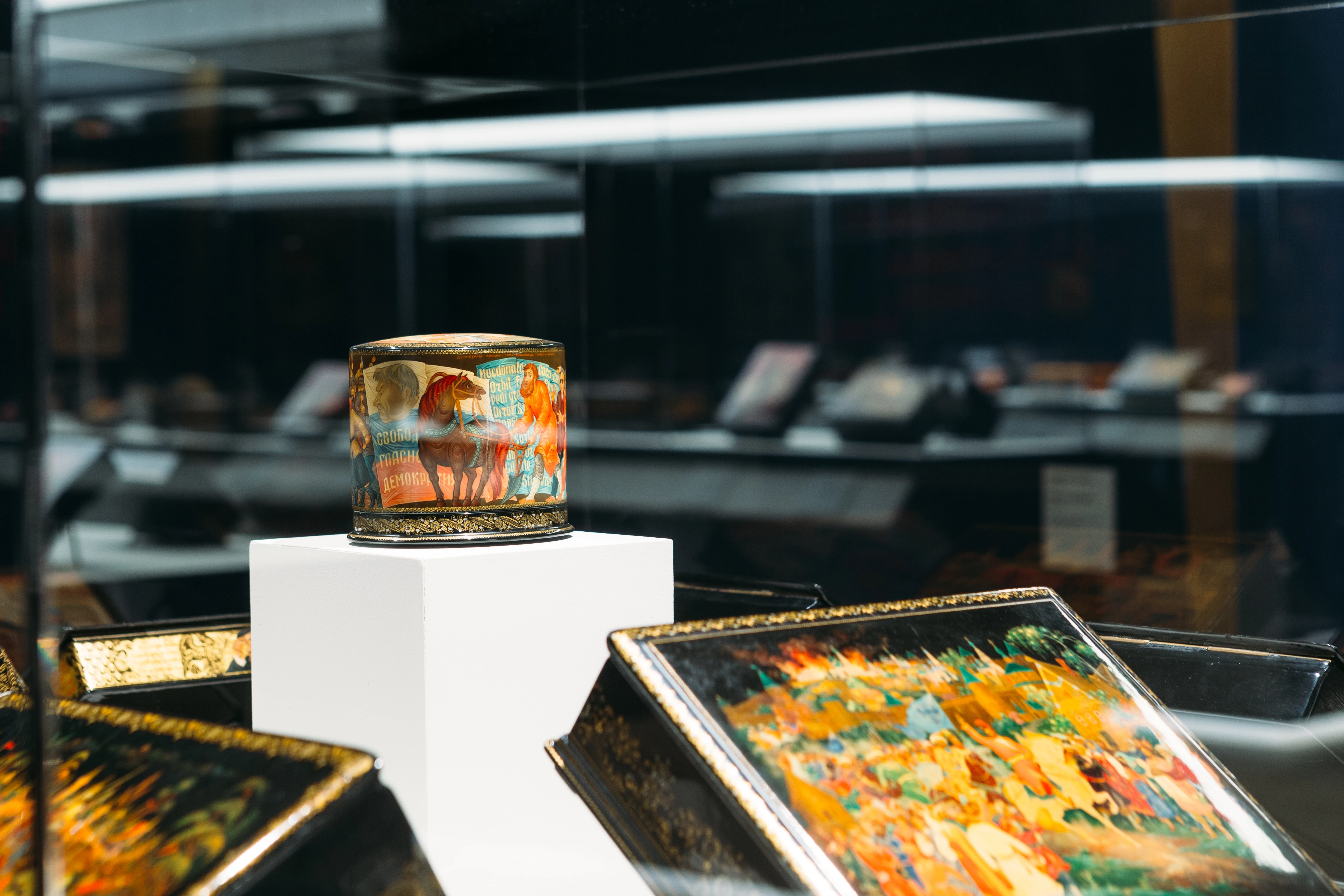 Выставка проводится в год 230-летия Федоскинского промысла, который занимает особое место в истории русского декоративно-прикладного искусства и стал важной частью экспозиции. Произведения мастеров традиционных центров лаковой миниатюры — Федоскино, Палеха, Мстёры и Холуя — мост между прошлым и настоящим, историей и культурой.