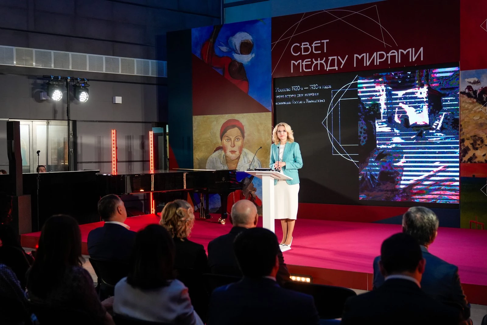 На открытии выставки присутствовали заместитель Председателя Правительства РФ Татьяна Голикова, заместитель Председателя Правительства РФ Марат Хуснуллин, помощник Президента РФ Владимир Мединский, помощник Президента Республики Узбекистан Саида Мирзиёева и другие официальные лица.