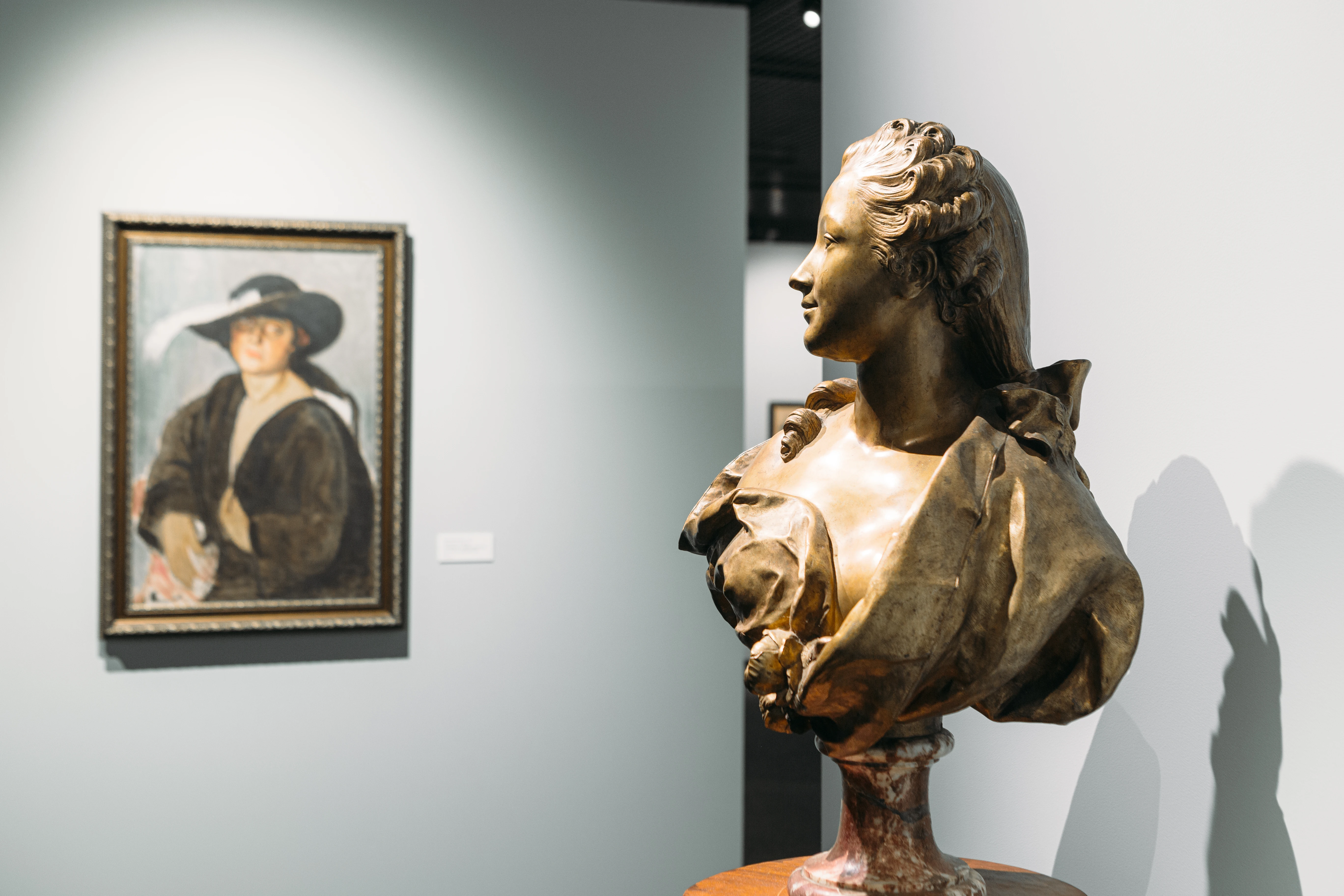 Структура экспозиции позволяет наглядно сопоставить разные эпохи и художественные стили. Например, рядом с портретом Маргариты Францевны Зотовой кисти Рокотова, экспонируются произведения Татьяны Александровны Шевченко, созданные в XX веке. Удаленные друг от друга по времени изображения наделены внутреннем родством, образы словно погружены в свой сугубо личный мир, опоэтизированный авторами.