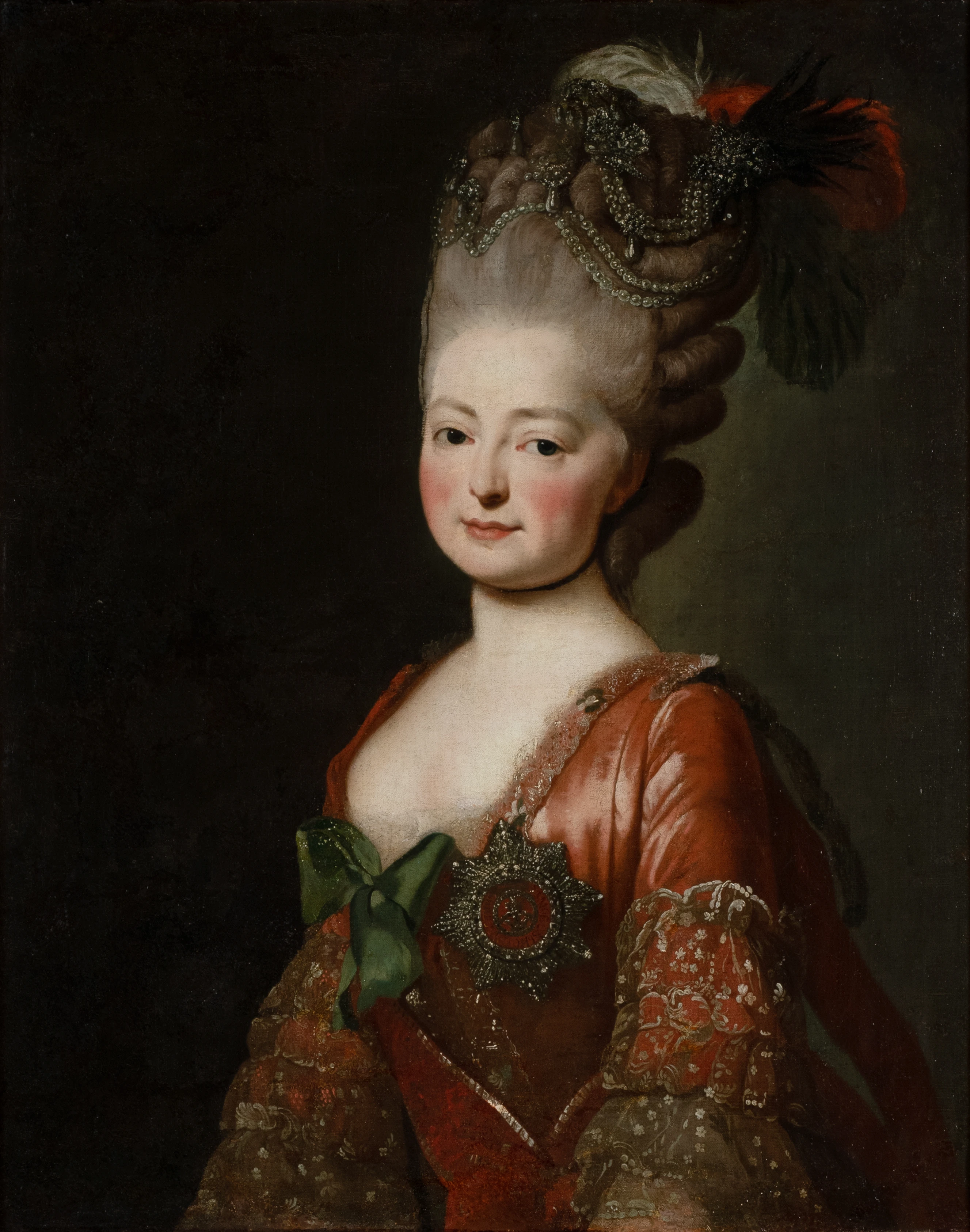 В отдельный раздел выделен парадный портрет XVIII–XIX века, в котором подчеркивается сословная принадлежность модели. Яркие примеры подобных работ — портрет княжны Марии Кантемир, написанный в 1710 году, во времена Петра Великого Иваном Никитиным (?) или портрет княгини Марии Федоровны Барятинской с дочерью Ольгой (1817) кисти Робера Лефевра. В обоих портретах внешняя атрибутика, наряд, убранство модели подчеркивают статус женщины. Получивший блестящее развитие в эпоху классицизма, парадный портрет возрождается в стилистике модерна, о чем свидетельствует одна из лучших работ Леонида Пастернака, изображающая жену известного чаеторговца Анну Борисовну Высоцкую-Готц.